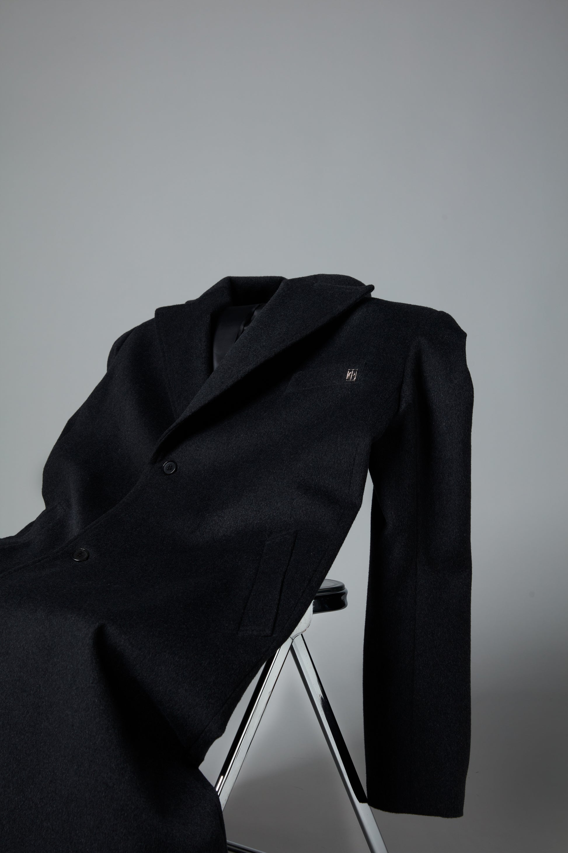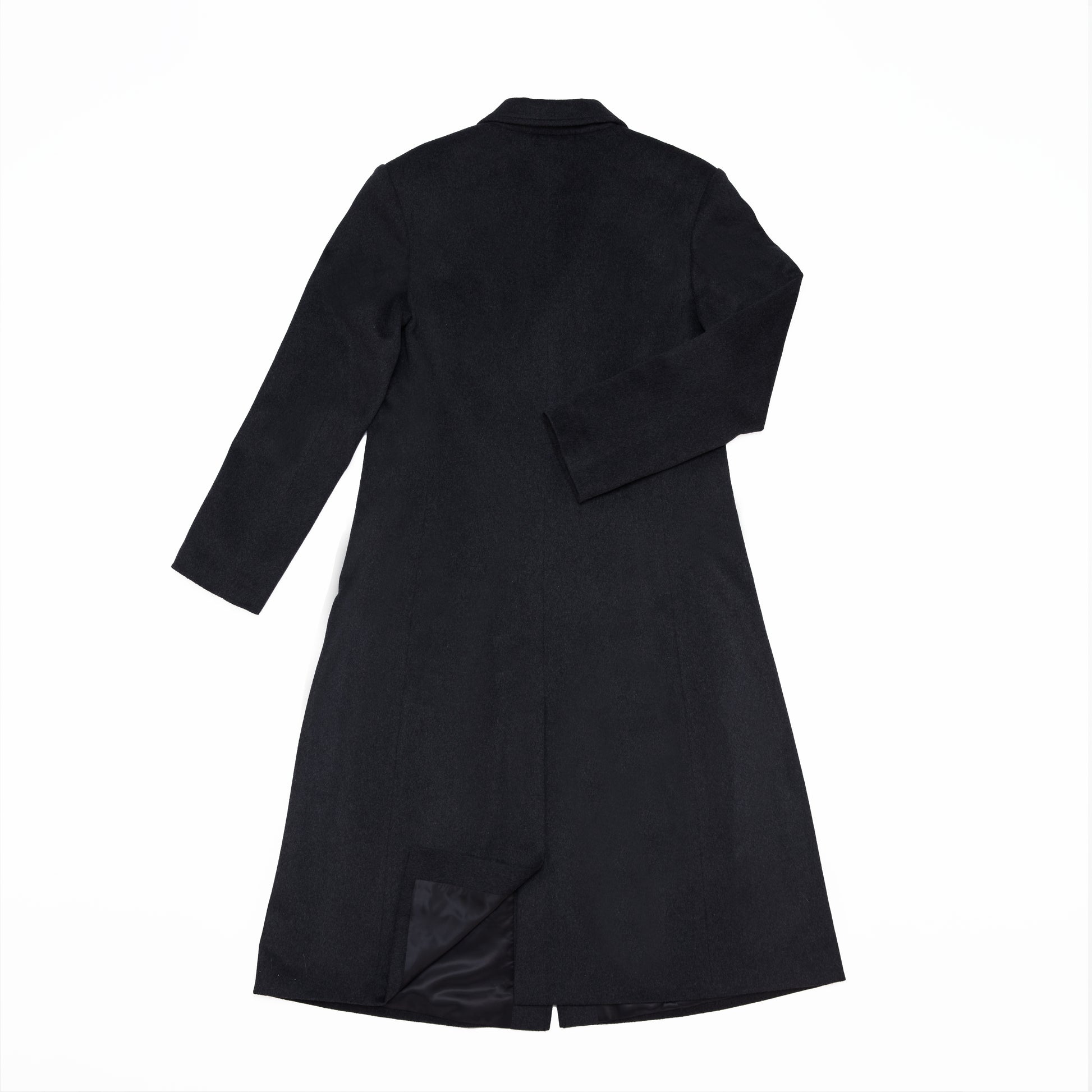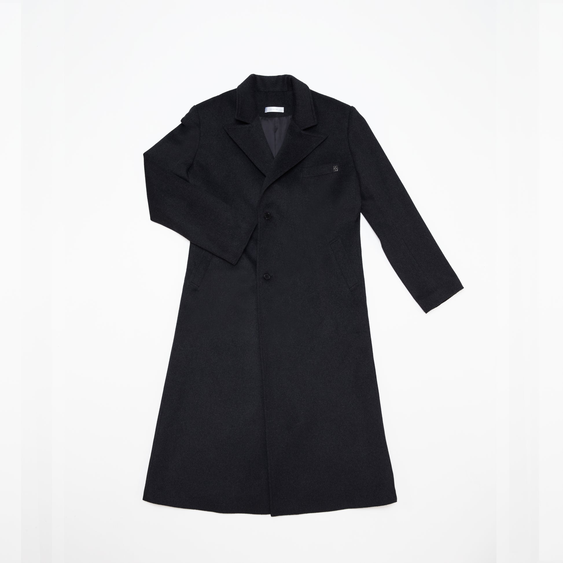 - Classic double-breasted button cut-out long coat with peaked collar